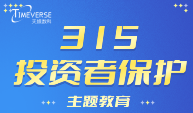 315投資者保護(hù)主題教育為切實(shí)做好投資者合法權(quán)益保護(hù)工作,助力資本市場平穩(wěn)健康發(fā)展,在2023年主題為“全面注冊制 改革向未來”的3·15投資者保護(hù)活動(dòng)來臨之際,天娛數(shù)科特別推