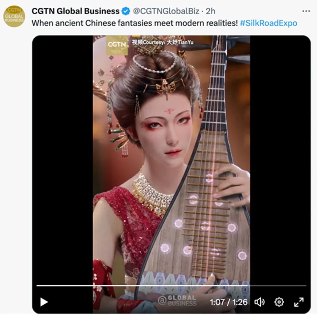 第六屆敦煌文博會(huì)期間,中國國際電視臺(tái)(CGTN)對天娛數(shù)科子公司元圓科技旗下虛擬數(shù)字人天妤進(jìn)行了連續(xù)三天的視頻推薦,在其Facebook,Twitter,YouTube、微博等多個(gè)官方賬號(hào)以及央視頻