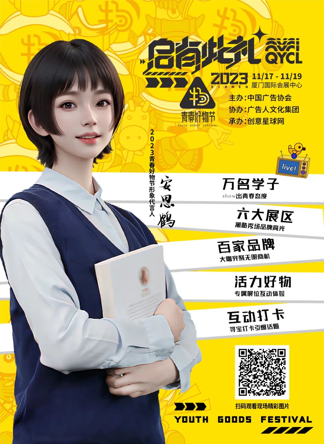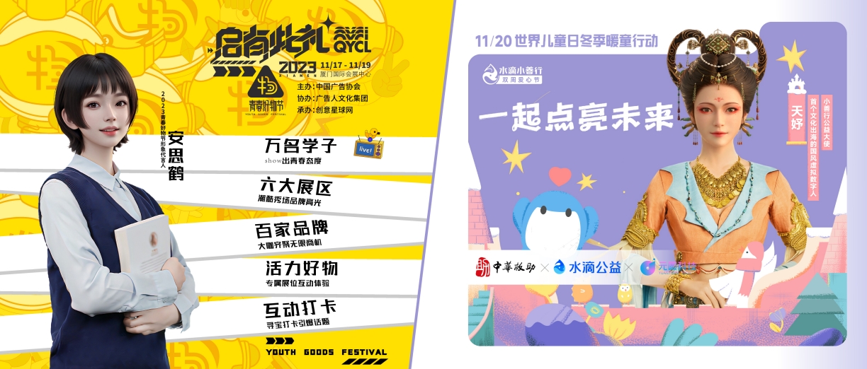 2023年11月16日,第30屆中國國際廣告節(jié)于廈門國際會(huì)展中心火爆開幕,天娛數(shù)科子公司元圓科技旗下由AI全流程打造的虛擬數(shù)字人安思鶴正式官宣為第30屆中國國際廣告節(jié)·2023青春好