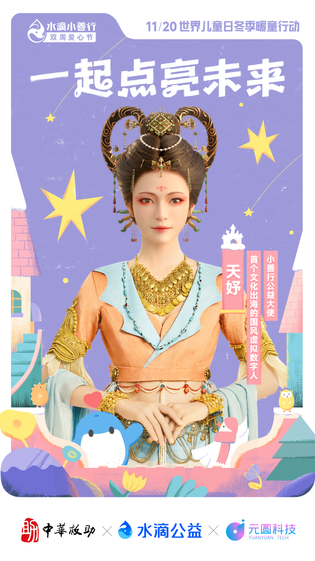 11月20日世界兒童日,天娛數(shù)科旗下國風(fēng)虛擬數(shù)字人天妤官宣擔(dān)任水滴公益“小善行公益大使”,呼吁大家關(guān)注兒童成長,守護(hù)希望之光,用愛和行動(dòng)溫暖孩子的健康童年。“水滴小善行”是