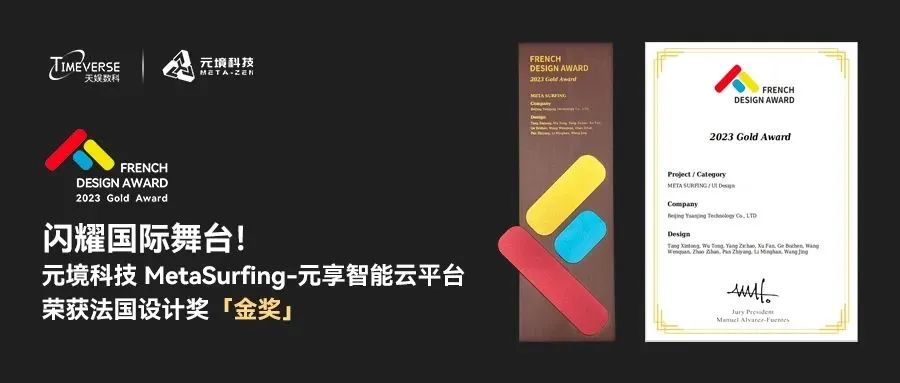 近日,2023 FRENCH DESIGN AWARD法國設(shè)計(jì)獎(jiǎng)公布獲獎(jiǎng)名單,天娛數(shù)科子公司元境科技自主研發(fā)產(chǎn)品「MetaSurfing-元享智能云平臺(tái)」憑借優(yōu)秀的產(chǎn)品體驗(yàn)和先進(jìn)的軟件架構(gòu)設(shè)計(jì)理念,榮獲